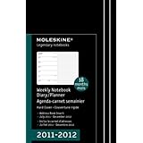 The Moleskine 18 Month Weekly Notebook large with black hard cover is dated from July 2010 to December 2012. Formatted to show the week s appointments on the left and a ruled page for notes and ideas on the right, this popular planner style is perfect for students and professionals. The expandable inner pocket houses an address book of 28 lined pages with laminated alphabetical labels. You can remove and use it again in the years to come.